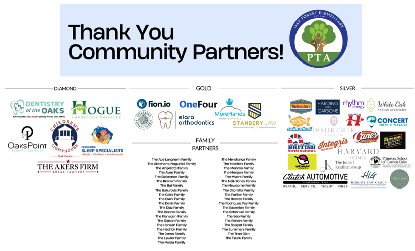 Oak Forest Elementary PTA is a 501(c)(3) nonprofit organization. Charitable donations are tax deductible in accordance with IRS rules.